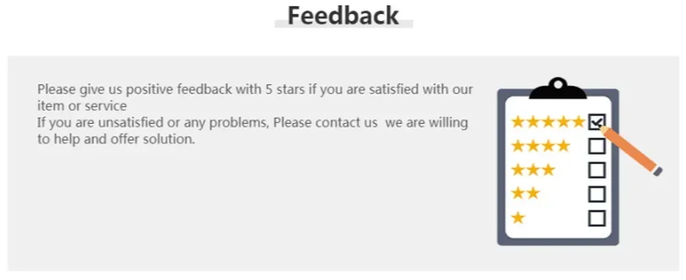 4.If you like our product,could you give us 5 star comment and share with your friend. Your appreciate is our power to become a great company.