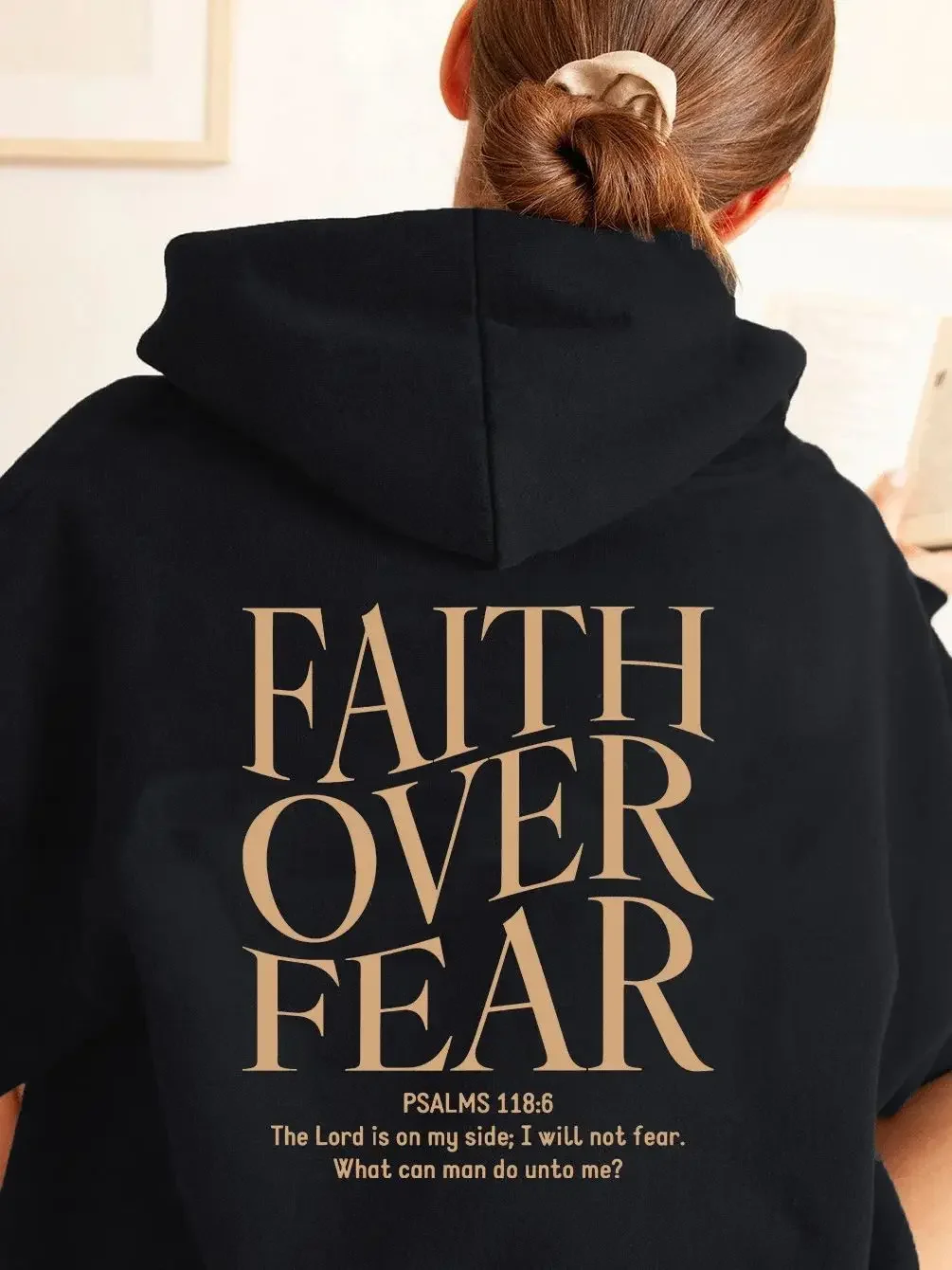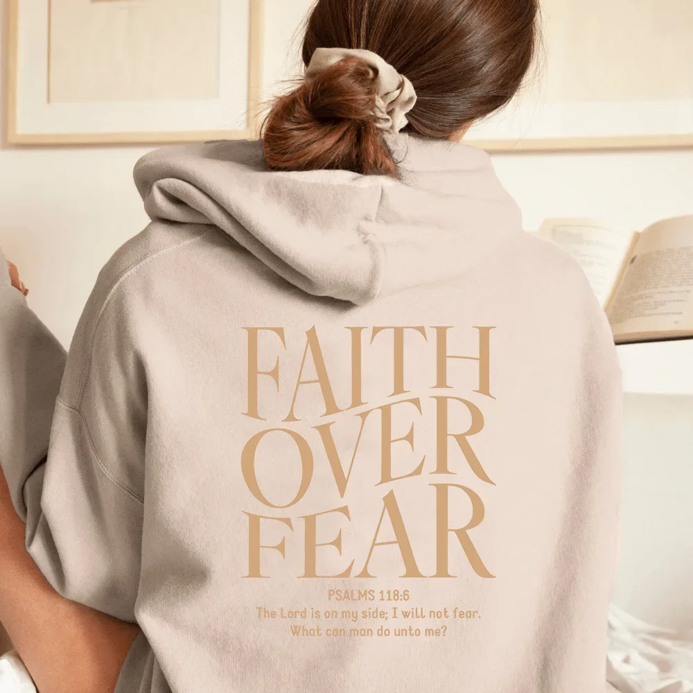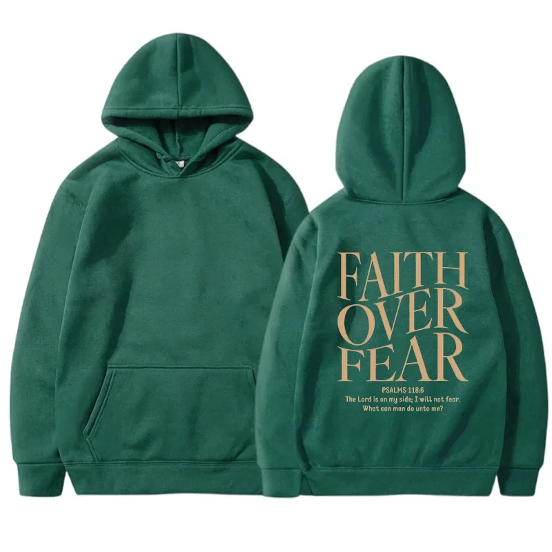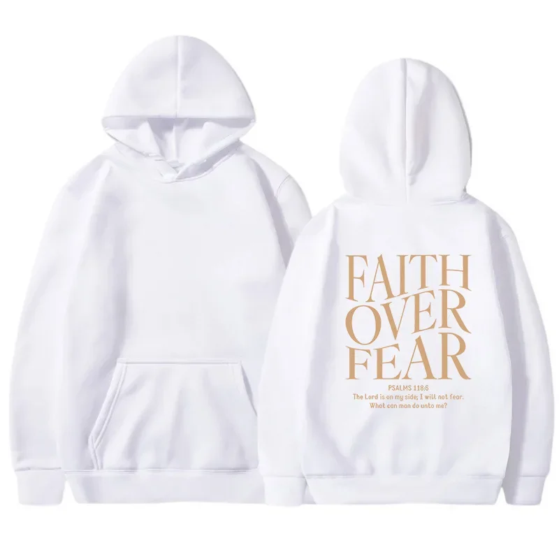 FAITH OVER FEAR Autumn European and American foreign trade simple plain color letter printed hooded men's and women's top hoodie